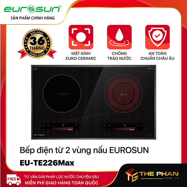Bếp Điện Từ Eurosun EU-TE226MAX được nhập khẩu nguyên chiếc từ Malaysia với thiết kế sang trọng cùng hệ điều khiển cảm ứng Slide trượt siêu nhạy, an toàn, bền bỉ và tiết kiệm điện năng.