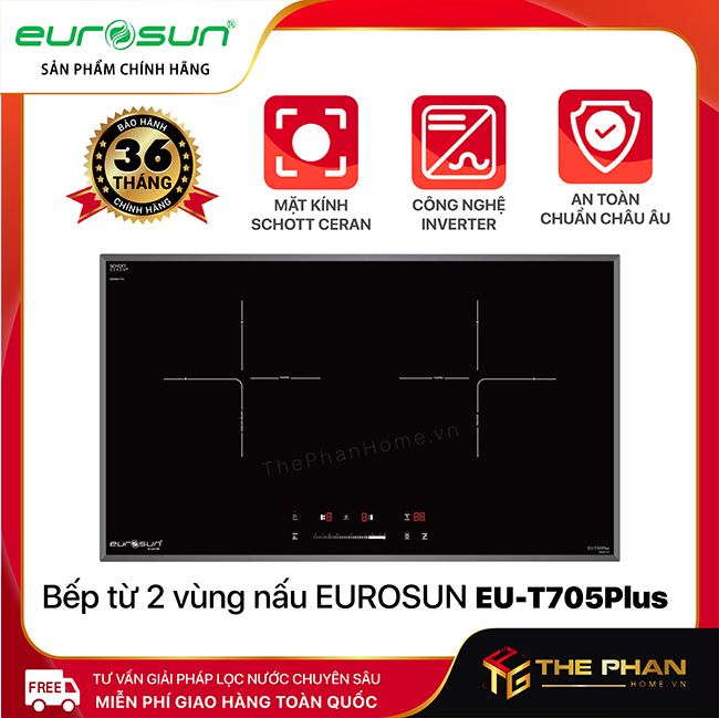Bếp từ Eurosun EU-T705Plus gồm 2 vùng nấu với tổng công suất 4000W. Chức năng Booster nấu siêu nhanh, tuy nhiên thời gian tối đa mặc định dùng chức năng này là 10 phút / lần tránh quá tải. Bếp được trang bị với công nghệ inverter thông minh vượt trội giúp làm giảm lượng tiêu thụ điện của các sản phẩm có sử dụng lõi từ của bếp từ.
