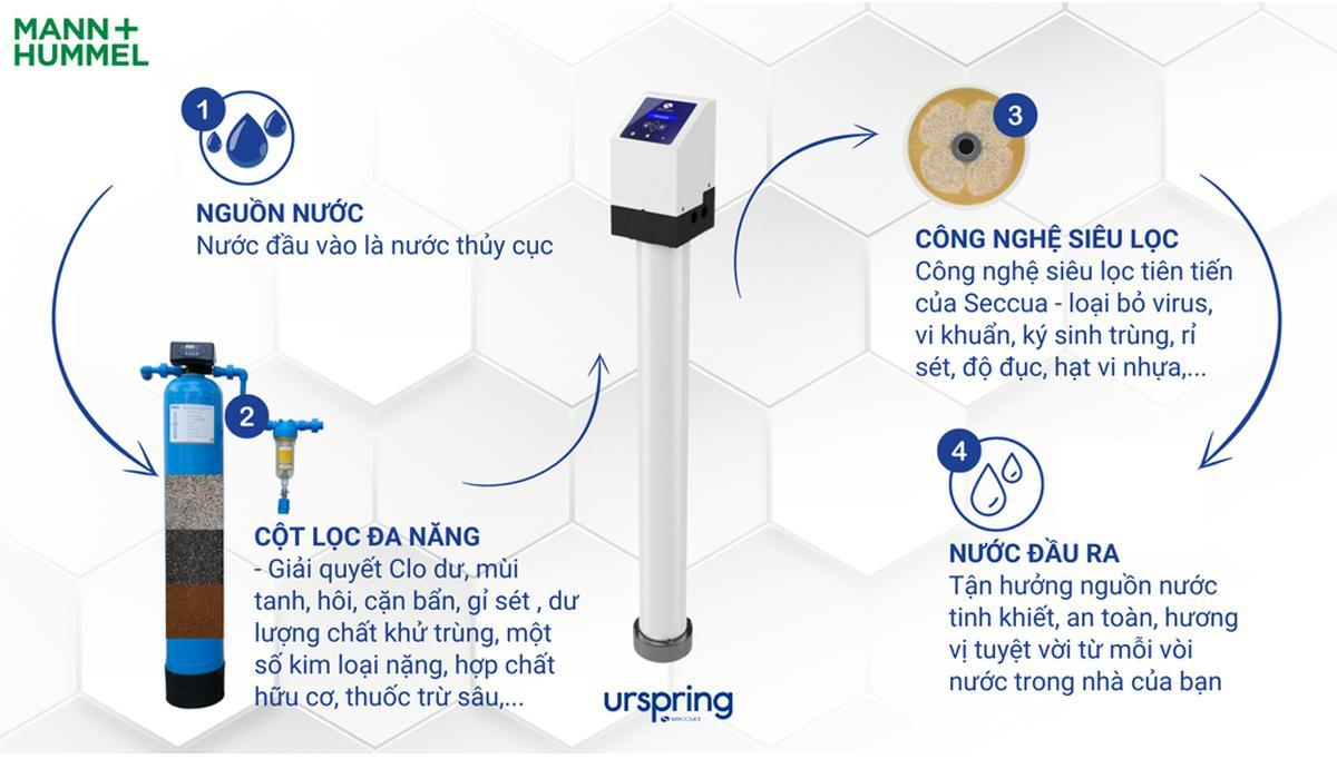 - Chất lượng nước sau lọc không cần tăng cường UV, không cần sử dụng hóa chất.