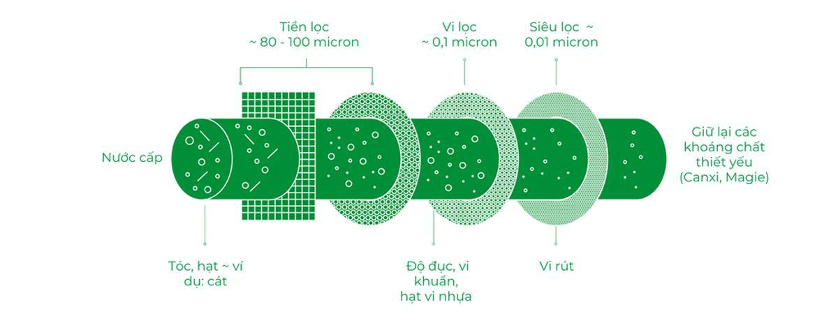 Có kích thước lỗ nhỏ hơn 20 nanomet (nhỏ hơn cả loại virus nhỏ nhất mà nhân loại từng biết). Loại bỏ 99,99999 % vi khuẩn, 99,99 % vi rút, vi nhựa, rỉ sét và độ đục trong nước.