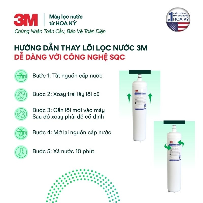 Lõi lọc HF90-S được thiết kế theo công nghệ tháo lắp nhanh (SQC) của 3M, cho phép người dùng thay thế lõi lọc một cách nhanh chóng và dễ dàng mà không cần sử dụng dụng cụ chuyên dụng. Điều này giúp tiết kiệm thời gian và chi phí bảo trì, đồng thời đảm bảo hệ thống lọc nước luôn hoạt động hiệu quả.