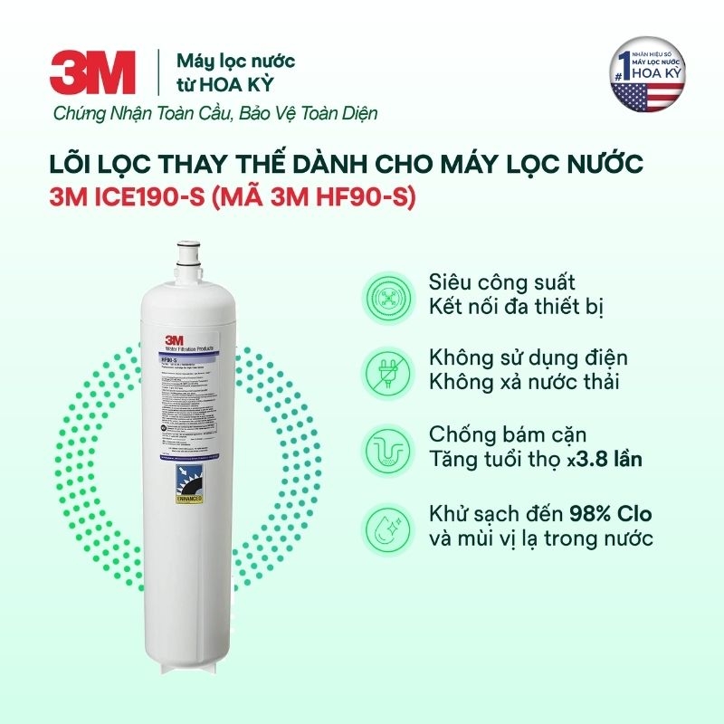 Với công suất lọc lên đến 204.412 lít và lưu lượng nước qua bộ lọc đạt 18,9 lít/phút, lõi lọc HF90-S đáp ứng nhu cầu sử dụng nước sạch liên tục cho các cơ sở kinh doanh có quy mô lớn. Sản phẩm không chỉ đảm bảo chất lượng nước mà còn duy trì hiệu suất hoạt động ổn định trong suốt thời gian sử dụng.