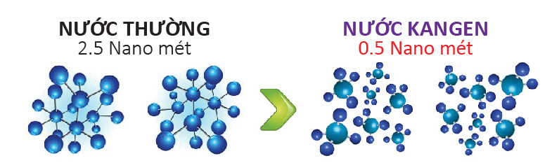 - Phân tử nước từ máy lọc nước ion kiềm Enagic Kangen Leveluk JRII rất nhỏ so với nước thông thường chỉ bằng khoảng 1/5. Chình nhớ tính năng đặc biệt này giúp nước kangen thẩm thấu vào cơ thể nhanh hơn. Thúc đẩy quá trình trao đổi chất và vận chuyển chất dinh dưỡng nhanh hơn. Đồng thời giúp tế bào tẩy rửa, thanh lọc các chất cặn bã có hại ra ngoài và chống khát hiệu quả.
