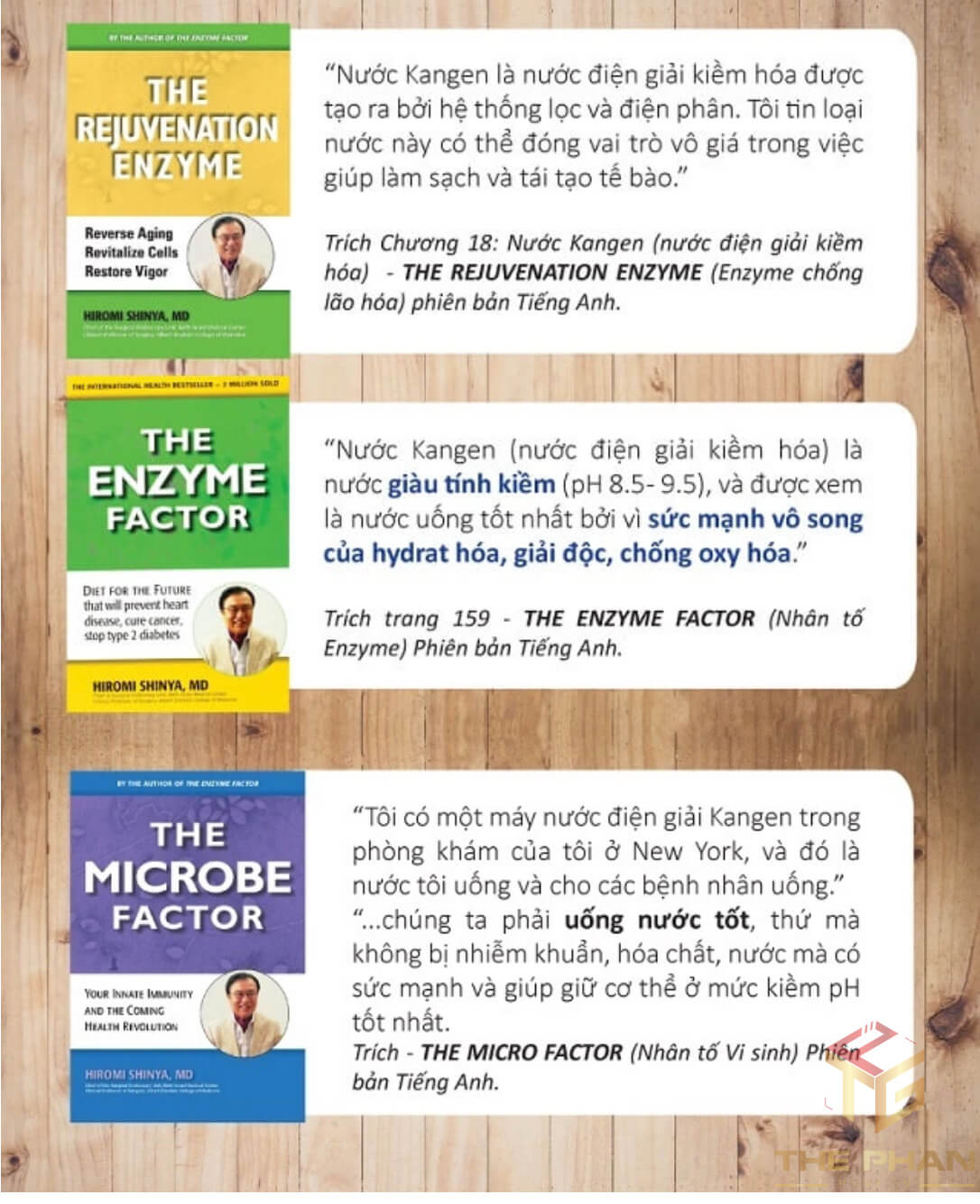 Cuốn sách Nhân tố Enzyme đã lý giải vì sao con người cần bổ sung nước kiềm đều đặn để có cuộc sống khỏe mạnh. Về bản chất, con người sẽ ở trạng thái bình thường và khỏe mạnh khi môi trường bên trong cơ thể mang tính kiềm nhẹ với độ pH khoảng 7.34 - 7.4.