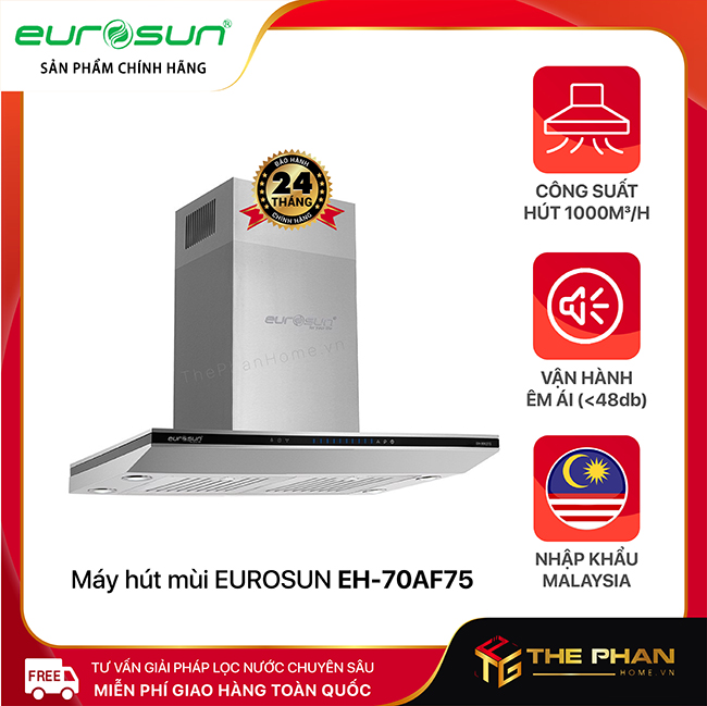 Máy hút mùi Eurosun EH-70AF75 sử dụng bảng điều khiển phím cảm ứng quang gồm 10 tốc độ hút phù hợp với lượng mùi và khói khi nấu ăn để đảm bảo sạch mùi cho không gian bếp nhà bạn. Hệ thống đèn chiếu sáng của máy gồm 4 đèn led có tác dụng chiếu sáng và làm cho công việc nấu ăn thêm thuận lợi. Lưới lọc mỡ bằng inox kết hợp lưới hợp kim gồm nhiều lớp để ngăn chặn triệt để mùi,bụi lọt vào bên trong máy gây hỏng động cơ. Tấm lưới này có thể tháo rời để vệ sinh một cách dễ dàng.