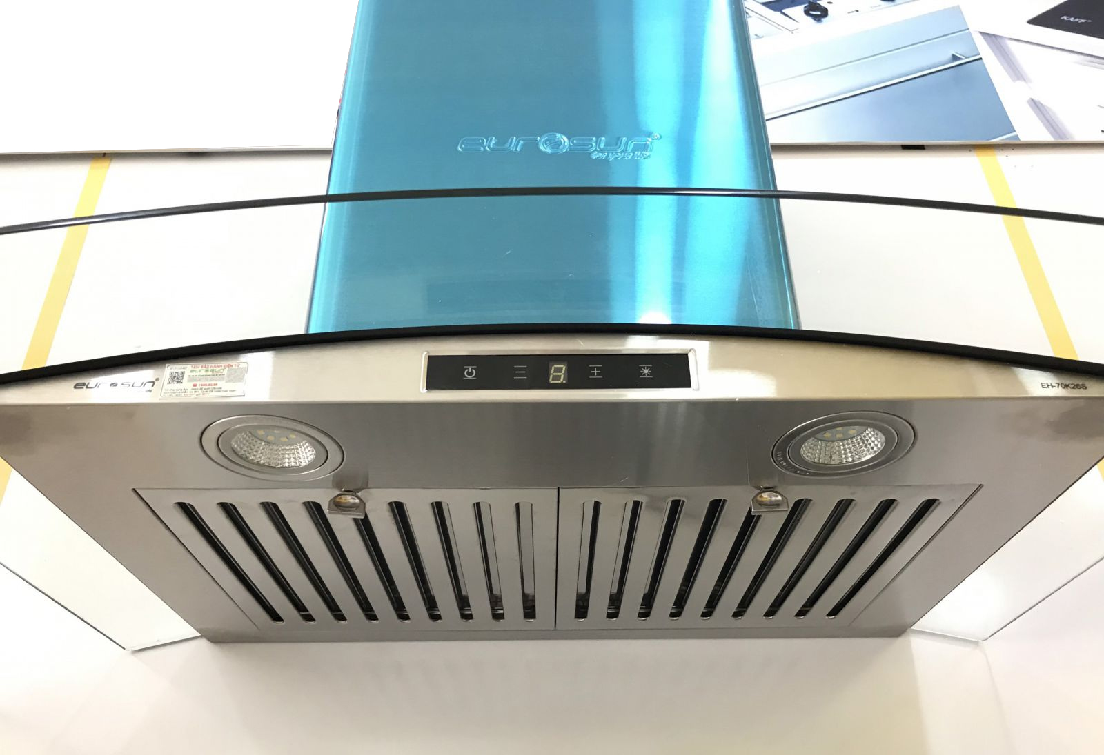 Máy Hút Mùi Eurosun EH-70K26S | EH-90K26S - Hút mùi gắn tường, 3 tốc độ, 1000m3/h, điều khiển từ xa, European Energy A+ được trang bị động cơ tua bin đôi nhằm tạo ra một công suất hút lớn nhất. Công suất động cơ 190W, công suất hút cực mạnh 1000m3/h giúp hút hết các mùi thức ăn làm sạch không khí mang lại cho căn bếp luôn thông thoáng.
