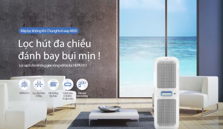Máy Lọc Không Khí ChungHo 6-Way A850 HEPA là một trong những sản phẩm như thế. Với những tính năng vượt trội, chất lượng lọc khí cao cùng thiết kế sang trọng, hiện đại, A850 chắc chắn sẽ không là người tiêu dùng phải thất vọng.