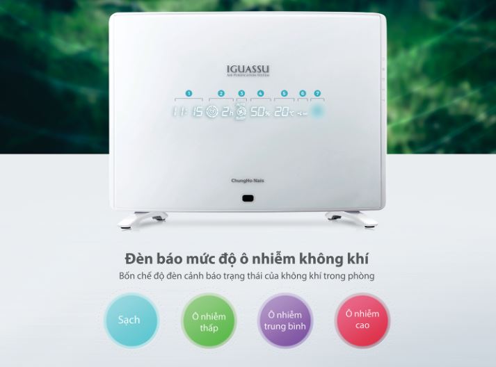Bộ 3 cảm biến đa năng của máy lọc không khí Chungho HEPA – Whirlis Silent được sử dụng để phát hiện bụi mịn, nhiệt độ và độ ẩm không khí trong phòng. Phát hiện và điều chỉnh luồng không khí tự động lọc theo mức độ ô nhiễm. Bên cạnh đó là hệ thống lọc sạch 3 chiều với 2 của lưu thông gió giúp cho không gian sống thu thái, thoải mái hơn. Hệ thống đèn cản báo ô nhiễm 4 mức độ: sạch-ô nhiễm thấp-ô nhiễm trung bình-ô nhiễm cao tương đương với 4 màu săc: xanh dương-xanh lá-tím-đỏ.