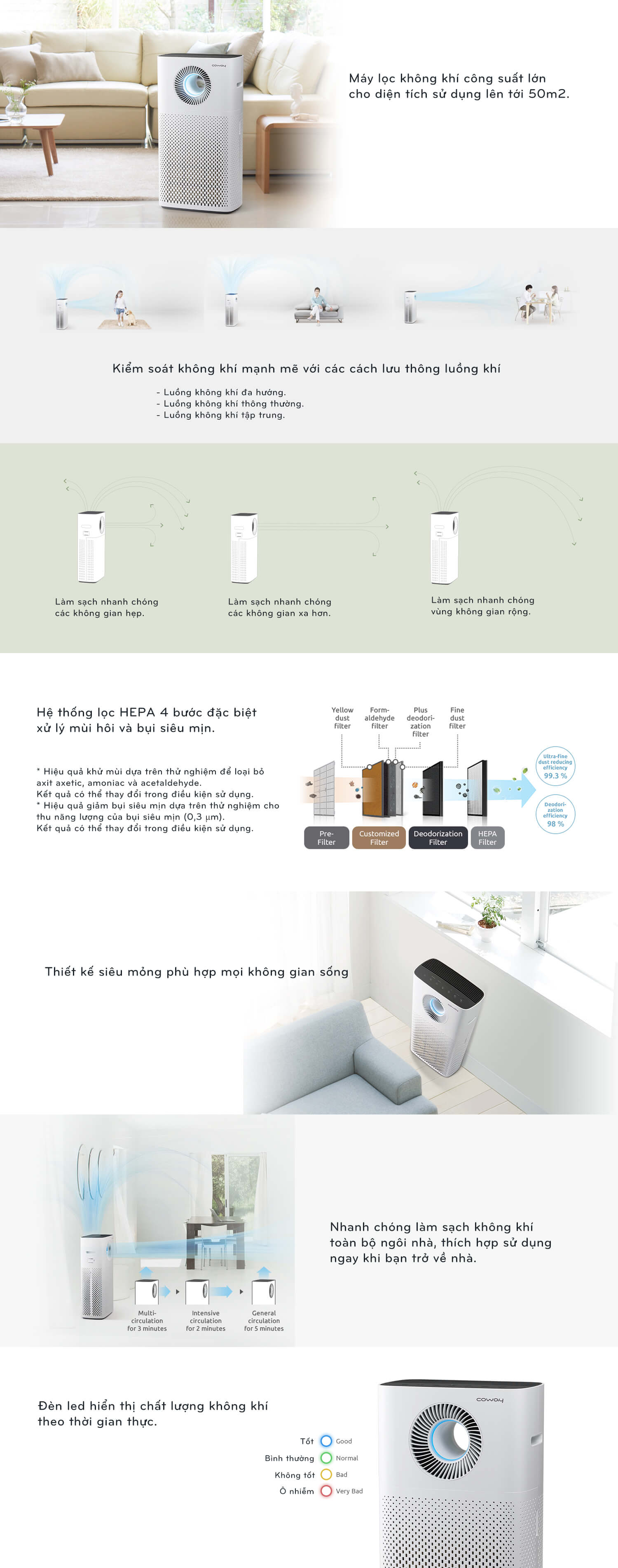 • Công nghệ màng lọc True HEPA thảo dược độc quyền của Coway