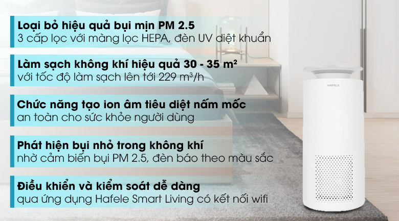 - Lưới lọc HEPA loại bỏ hiệu quả bụi mịn PM 2.5.