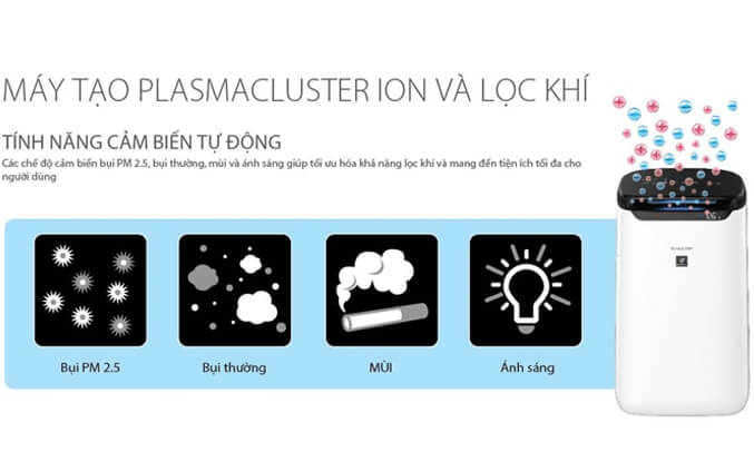 Plasma sẽ phóng thích các ion dương và ion âm tương tự như quá trình xảy ra trong tự nhiên. Máy tạo ra nồng độ Plasmacluster ion (PCI) lên đến 25000 ion/cm3 giúp loại bỏ 99.9% vi khuẩn, các chất gây dị ứng và mùi hôi khó chịu.