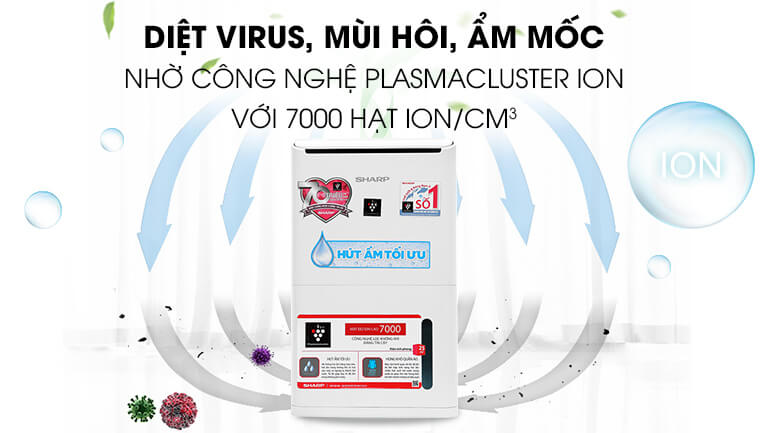Máy hút ẩm kết hợp lọc không khí mang lại tối ưu luồng không khí trong lành, sảng khoái cho gia đình bạn. Đồng thời hệ thống cảm biến độ ẩm tự phát hiện độ ẩm ở 80%, máy sẽ tăng ion ngăn ngừa nấm mốc phát triển, giúp độ ẩm ổn định cho bầu không khí dễ chịu trong phòng.Hơi nước trong không khí được ngưng tụ và giữ lại hơi ẩm khi đi qua dàn lạnh giúp căn phòng được khô ráo hơn