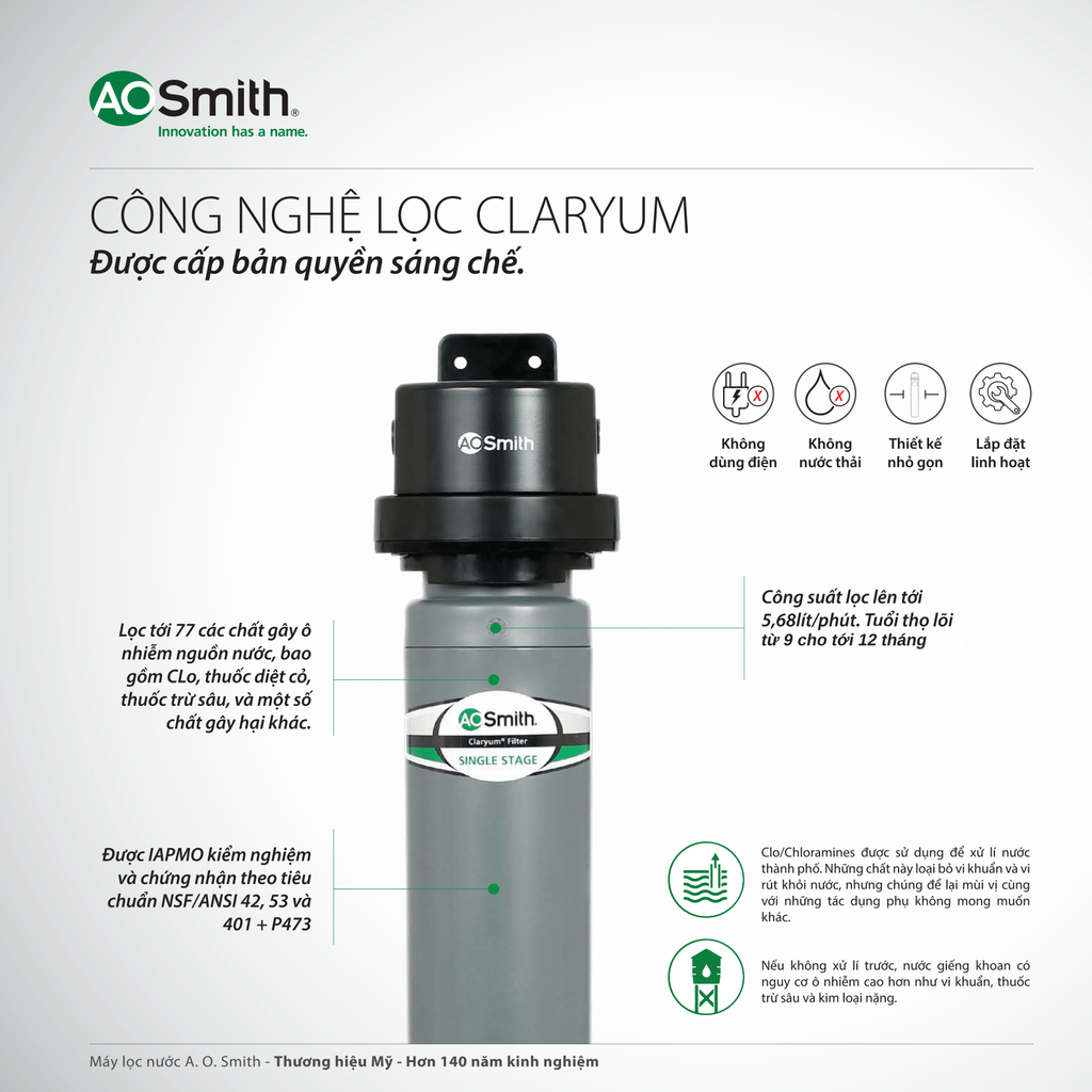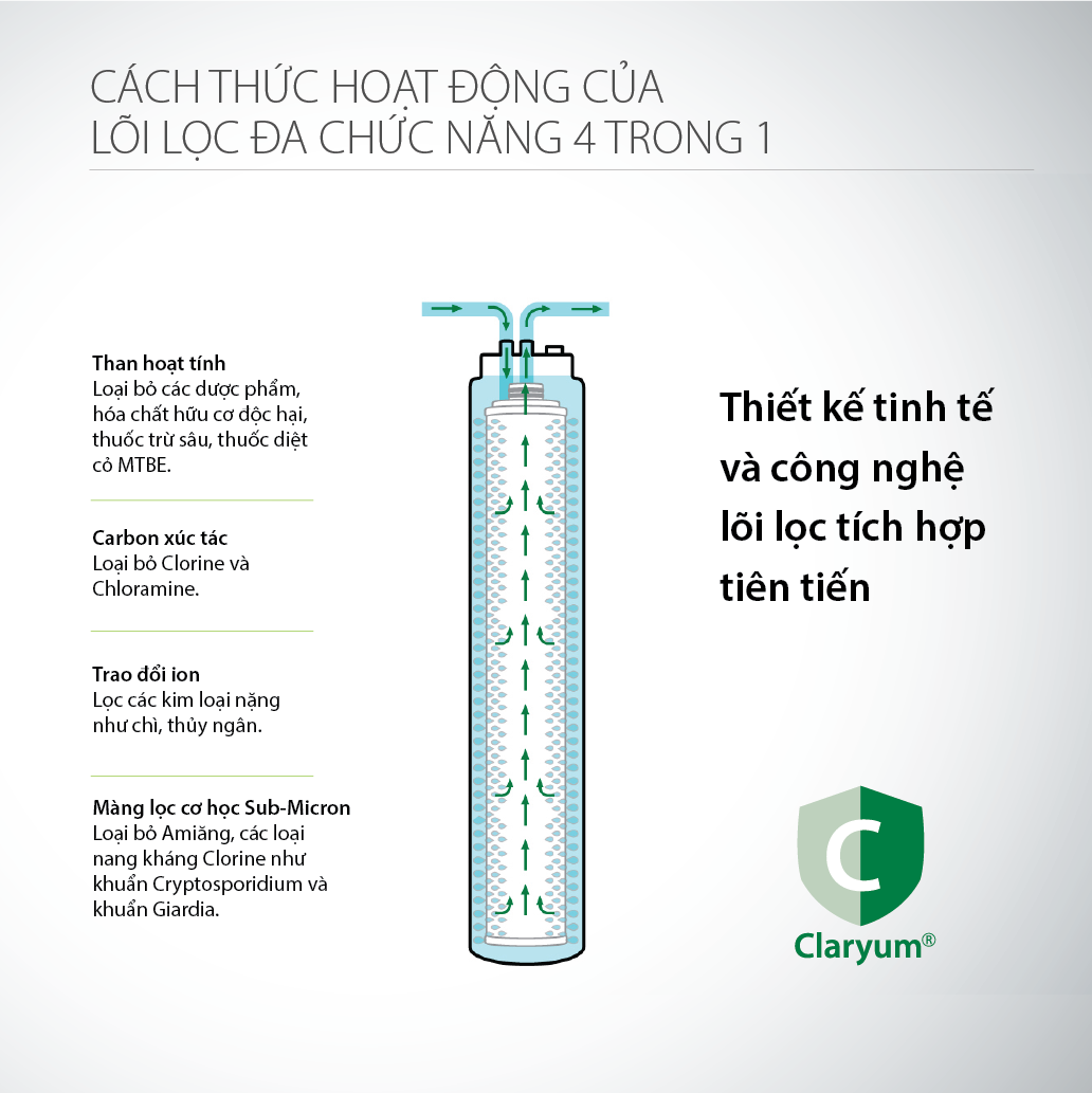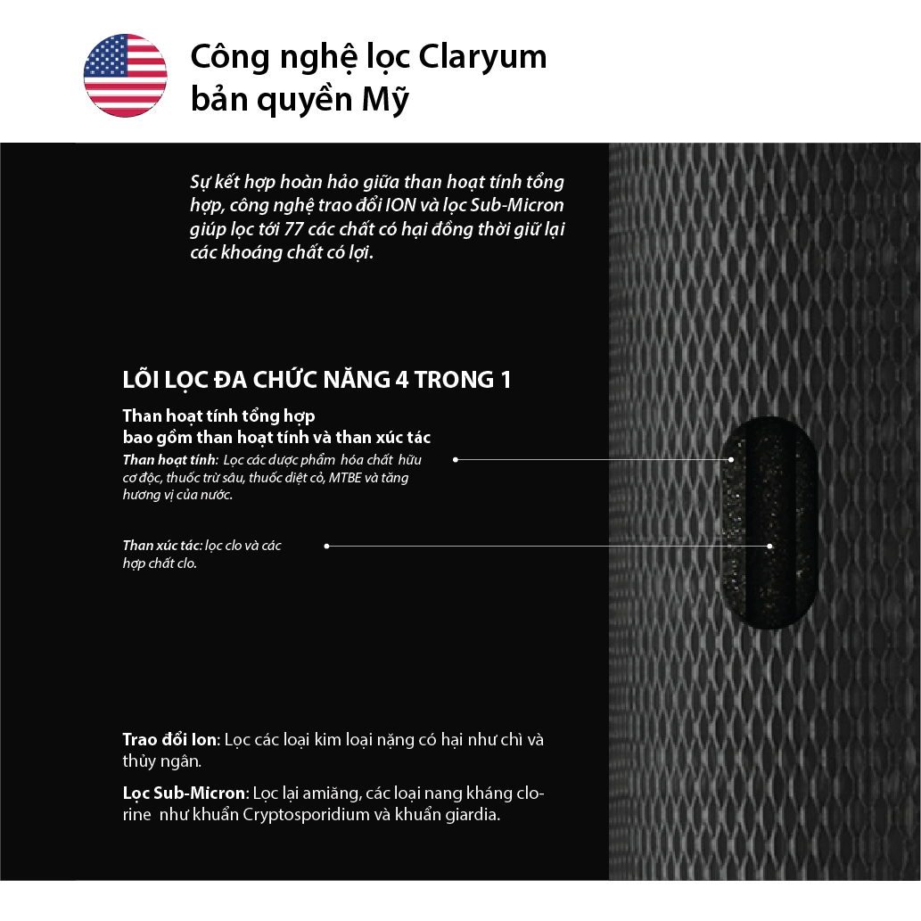 • Công nghệ lọc Claryum tiên tiến– Loại bỏ 77 loại chất ô nhiễm