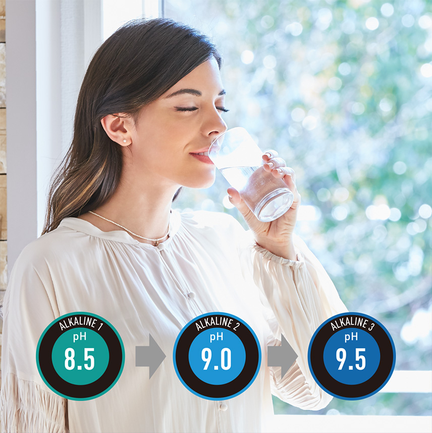 Hiệu quả về cải thiện các triệu chứng đường tiêu hóa của nước ion kiềm đã được phê duyệt theo quy định của Đạo luật về thiết bị y dược Nhật Bản (Đạo luật PMD). Nếu đây là lần đầu tiên uống loại nước này, bạn nên bắt đầu với nước có độ pH 8,5 cho đến khi bạn cảm thấy quen thuộc hơn.