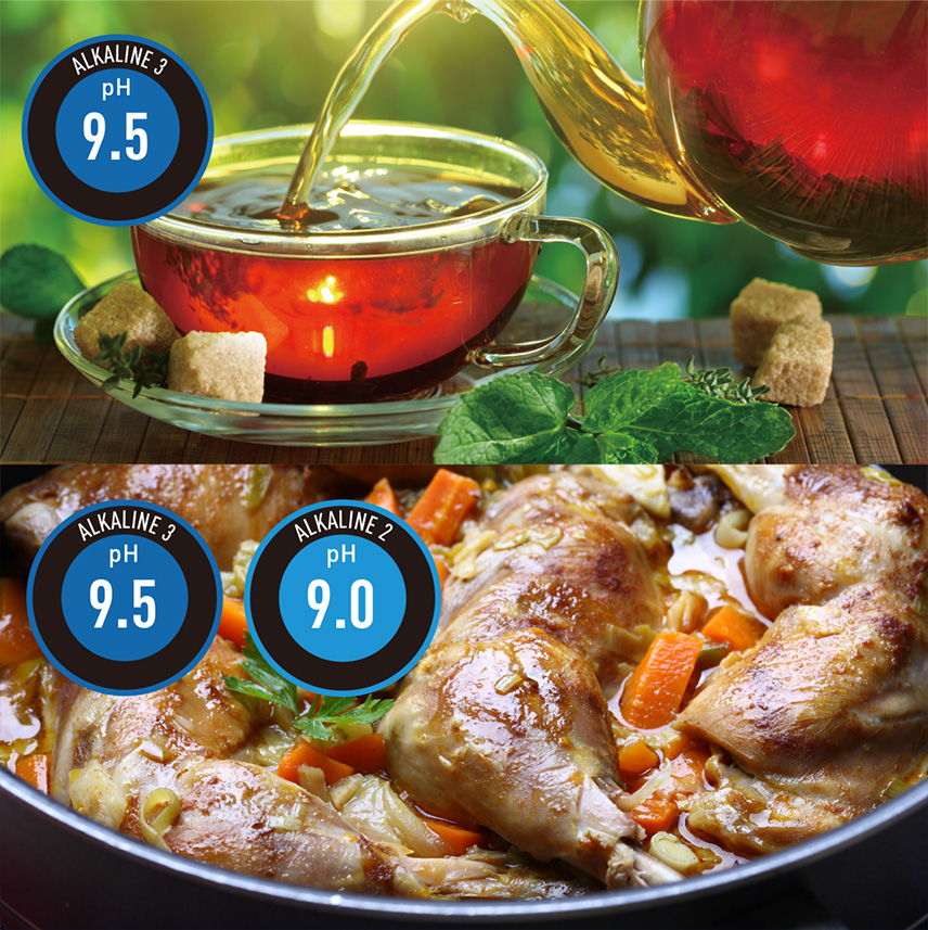 Nước ion kiềm ngấm vào thực phẩm nhiều hơn các loại nước khác và có các hiệu quả đặc biệt như chiết rút mùi thơm và làm mềm thực phẩm.