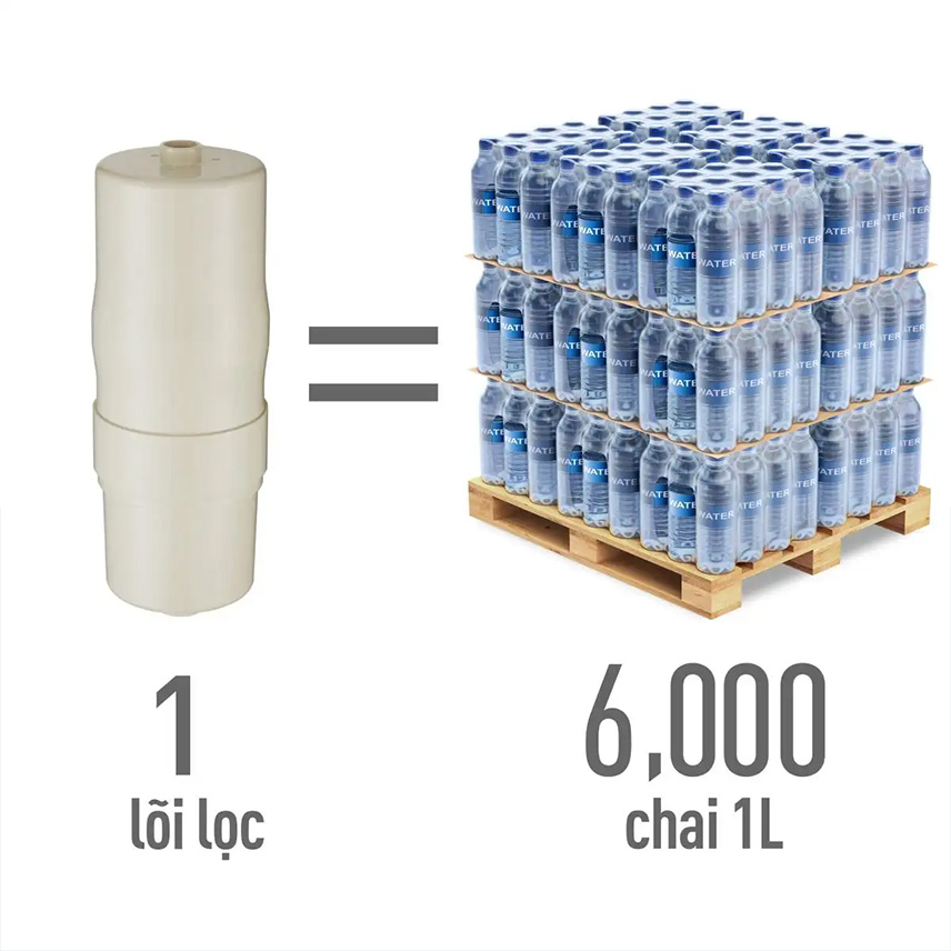 Chỉ với một lõi lọc có thể làm sạch khoảng 6.000 L nước. Lõi lọc này có thể được sử dụng suốt một năm cho dù phải lọc 15 L nước mỗi ngày, giảm thời gian và công sức thay lõi lọc mới. Việc giảm thiểu mua nước đóng chai không chỉ tiết kiệm mà còn làm giảm lượng rác thải từ hoạt động xử lý chai nhựa và thủy tinh.