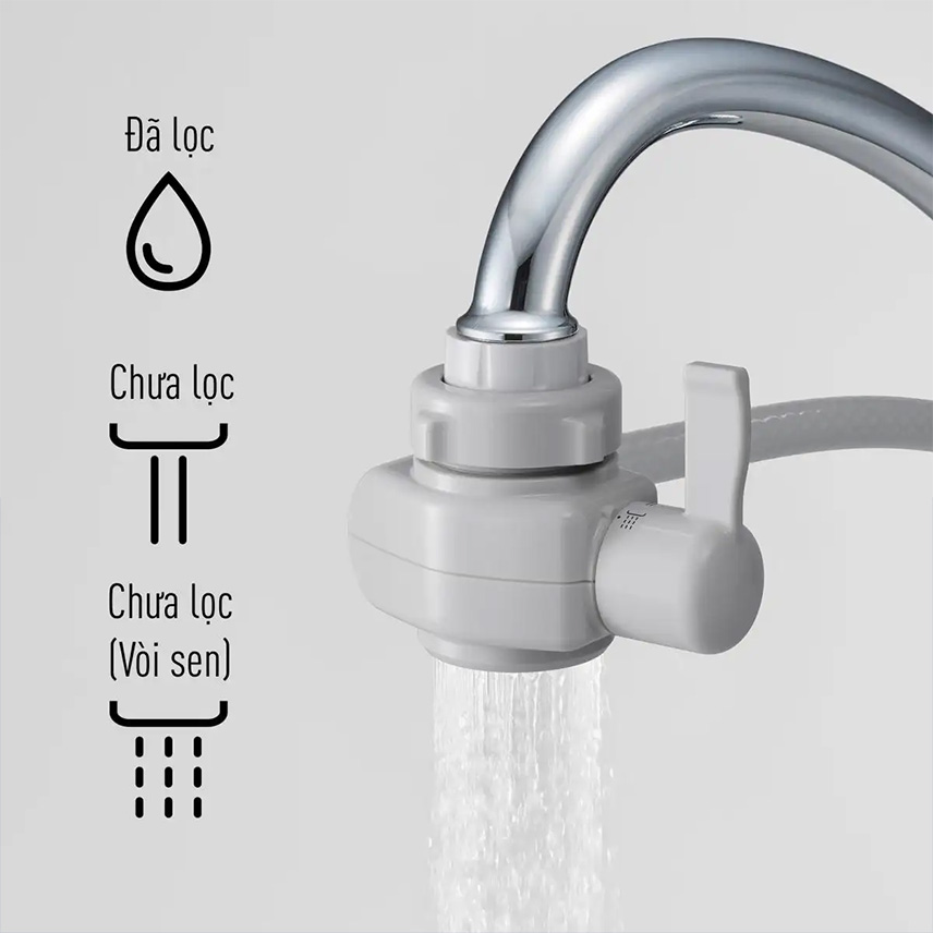 Cần gạt cho phép bạn dễ dàng chuyển đổi giữa nước qua lọc, nước chưa lọc tia thẳng và nước chưa lọc tia sen, chỉ với một thao tác dễ dàng.