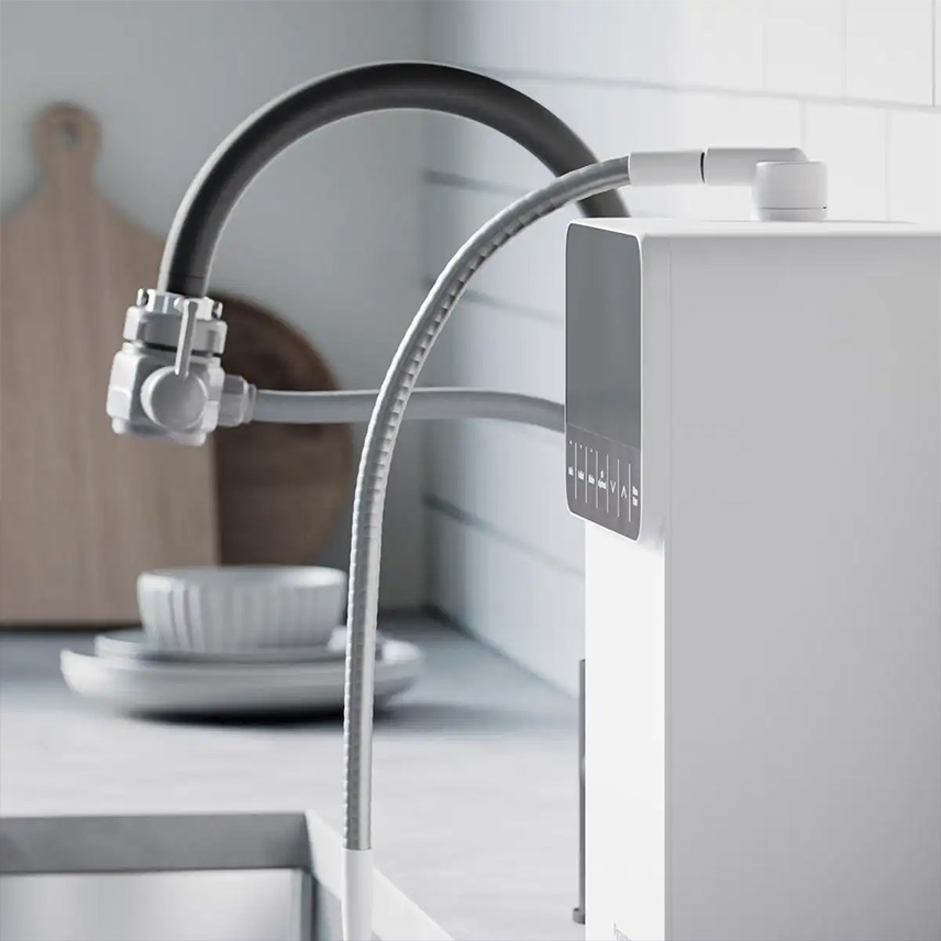 Bạn có thể tự lắp đặt vì không cần chuyển đổi kết nối vòi bên dưới bồn rửa hoặc khoan lỗ trên bảng điều khiển của bếp.