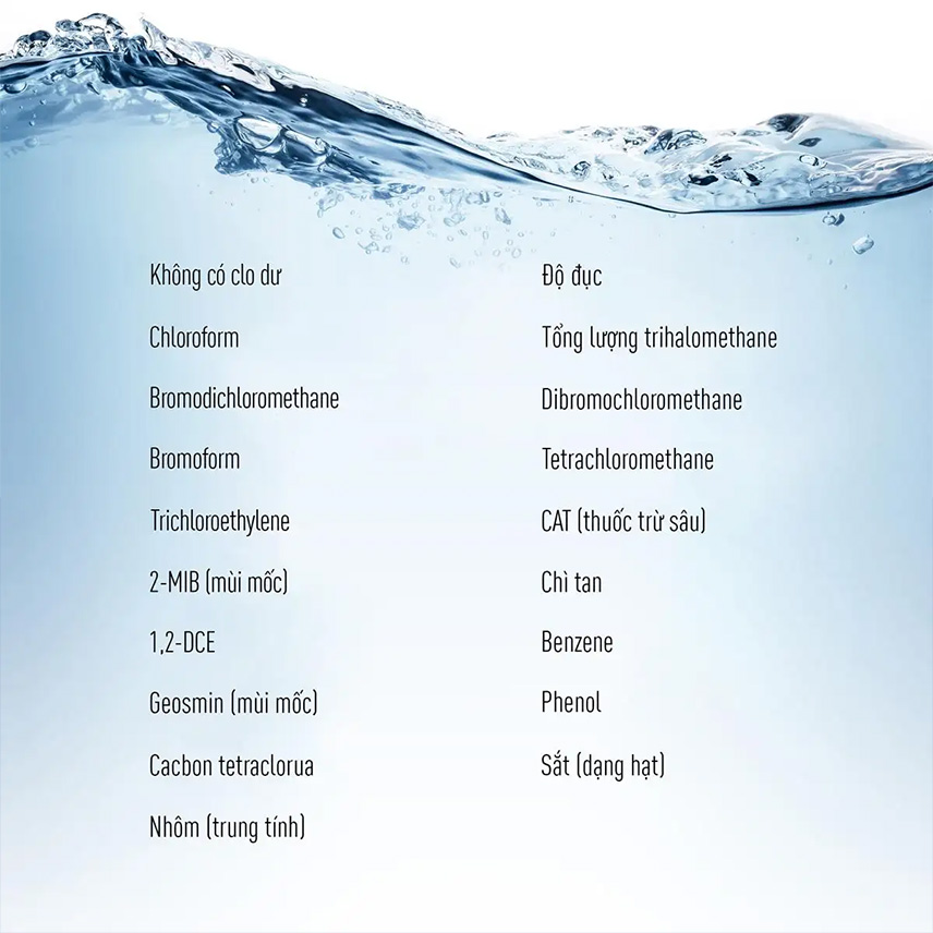 Bộ lọc không chỉ loại bỏ 19 chất có hại theo Tiêu chuẩn Công nghiệp Nhật Bản JIS S3201 (như clo, cloroform và sắt,…) mà còn có thể giữ lại các khoáng chất cần thiết cho cơ thể như canxi.
