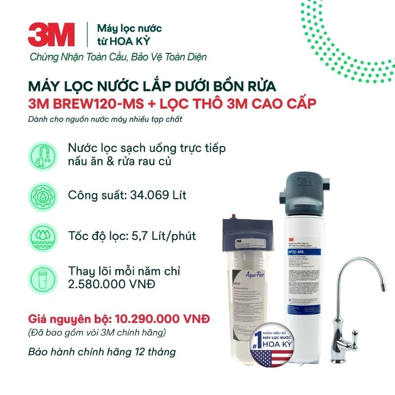 Máy lọc nước 3M BREW120-MS là một trong những sản phẩm nổi bật của thương hiệu 3M, chuyên dùng để cung cấp nguồn nước tinh khiết, cải thiện hương vị cho cà phê và các loại đồ uống. Với công nghệ lọc tiên tiến, sản phẩm này giúp loại bỏ hiệu quả các tạp chất, clo, cặn bẩn, giúp nước có vị thanh khiết, giữ nguyên chất lượng và hương thơm của cà phê hay trà. Hãy cùng tìm hiểu chi tiết về máy lọc nước 3M BREW120-MS và lý do tại sao đây là sự lựa chọn lý tưởng cho các quán cà phê, nhà hàng và gia đình yêu thích đồ uống chất lượng.