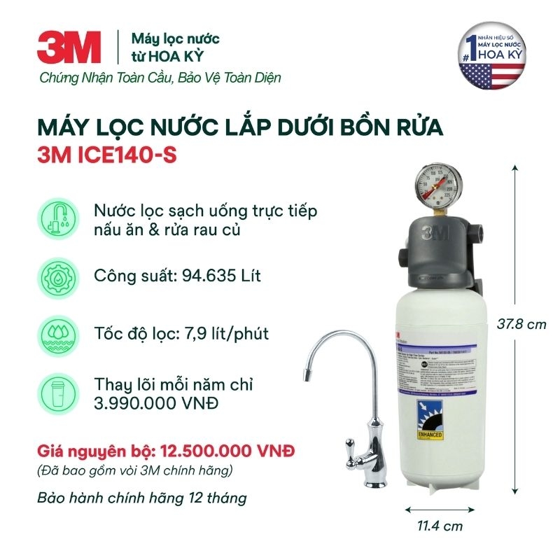 Máy lọc nước 3M lắp dưới bồn rửa ICE140S là một trong những sản phẩm nổi bật đến từ thương hiệu 3M – một thương hiệu hàng đầu thế giới trong lĩnh vực công nghệ lọc nước. Với thiết kế nhỏ gọn, tiện lợi cùng công nghệ lọc tiên tiến, sản phẩm này mang đến nguồn nước sạch, tinh khiết, an toàn cho gia đình, quán cà phê, nhà hàng và nhiều môi trường khác.
