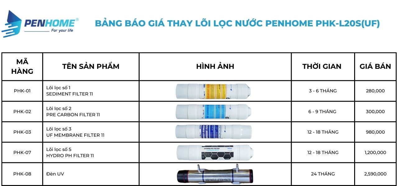 Máy lọc nước PENHOME PHK-L20S(UF) được trang bị công nghệ lọc UF - công nghệ lọc nước tiên tiến và hiện đại nhất hiện nay. Với màng siêu lọc cấu tạo từ các sợi rỗng có kích thước lỗ từ 0.01 - 0.1 µm, công nghệ UF có khả năng loại bỏ virus, vi khuẩn, tạp chất, kim loại nặng và các chất độc hại lơ lửng trong nước. Từ đó, máy sẽ mang đến cho gia đình bạn nguồn nước uống tinh khiết, đạt tiêu chuẩn nước đóng chai.