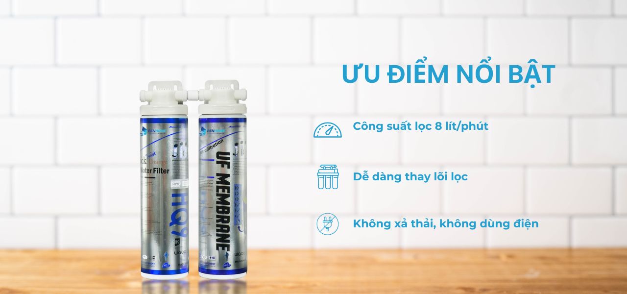 Máy lọc nước PENHOME PHK-2EU(UF) được trang bị hệ thống 3 lõi lọc tiện lợi, dễ dàng tháo lắp và giúp tạo ra những công dụng vượt trội như: