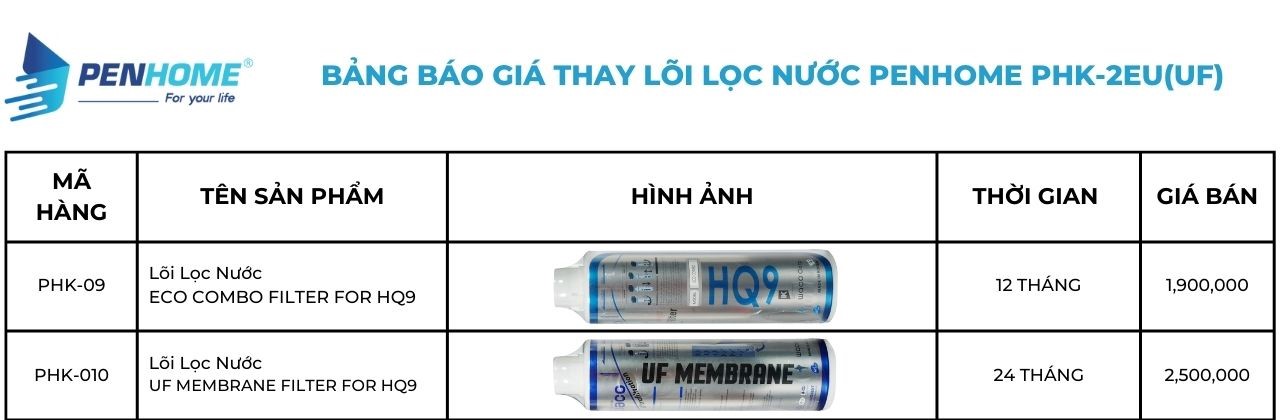 Máy lọc nước PENHOME PHK-2EU(UF) được trang công nghệ lọc UF - công nghệ lọc nước tiên tiến và hiện đại nhất hiện nay. Với màng siêu lọc được cấu tạo từ những sợi rỗng có kích thước lỗ từ 0.01 - 0.1 µm, công nghệ lọc UF có thể loại bỏ các loại virus, vi khuẩn, tạp chất, kim loại nặng và các chất độc hại lơ lửng có trong nước. Từ đó giúp đem lại cho gia đình bạn nguồn nước uống tinh khiết, đạt chuẩn nước đóng chai.
