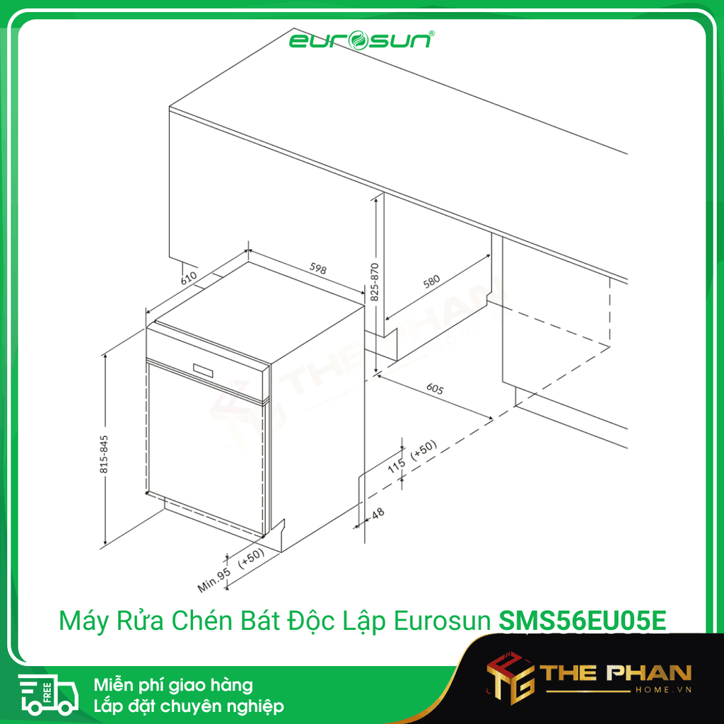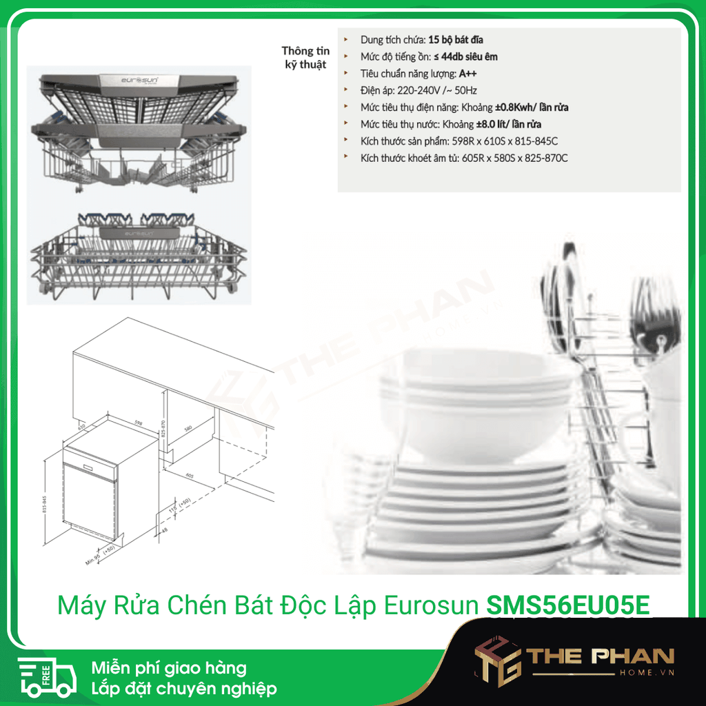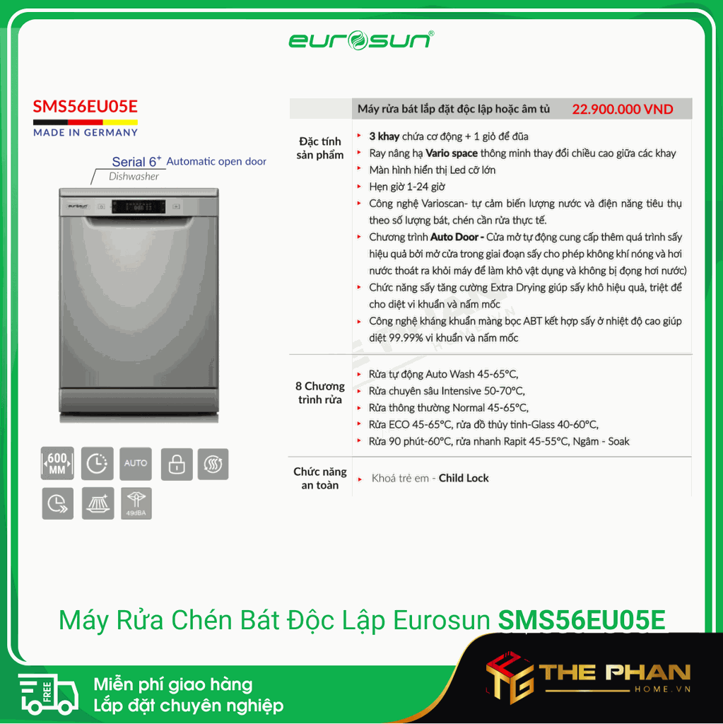 Máy Rửa Chén Bát EUROSUN SMS56EU05E là một trợ thủ đắc lắc cho căn bếp của gia đình chúng ta, giúp mọi người tiết kiệm được thời gian dành nhiều thời gian hơn cho gia đình.