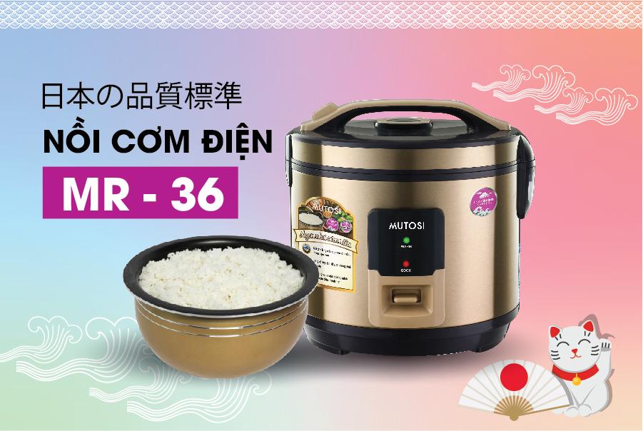 Nồi Cơm Điện Mutosi MR36 thuộc dòng nồi cơm điện nắp gài, liền với thân dưới được ưa chuộng trong các ngôi nhà hiện đại. Sản phẩm nhỏ gọn với chiều ngang chỉ 28cm, mẫu mã lạ mắt nhờ màu đỏ sáng bóng mang lại sự sang trọng cho không gian căn bếp ngôi nhà bạn.