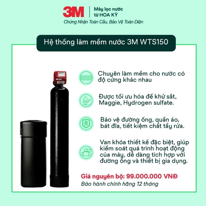 Hệ thống máy làm mềm nước 3M WTS150 là giải pháp tối ưu cho vấn đề nước cứng, mang lại nhiều lợi ích cho cả gia đình và doanh nghiệp.