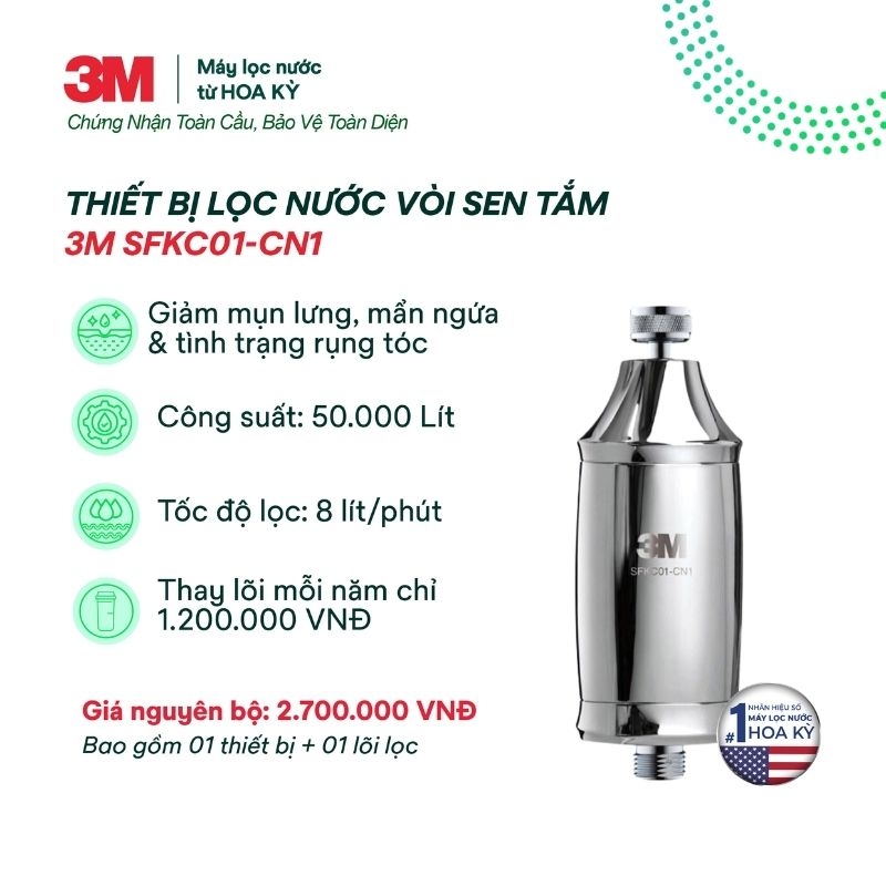 Thiết bị lọc nước sen tắm 3M SFKC01-CN1 là giải pháp tiên tiến giúp cải thiện chất lượng nước tắm, bảo vệ làn da và mái tóc của người sử dụng. Với công nghệ lọc hiện đại và thiết kế tinh tế, sản phẩm này không chỉ nâng cao trải nghiệm tắm gội mà còn góp phần bảo vệ sức khỏe gia đình.