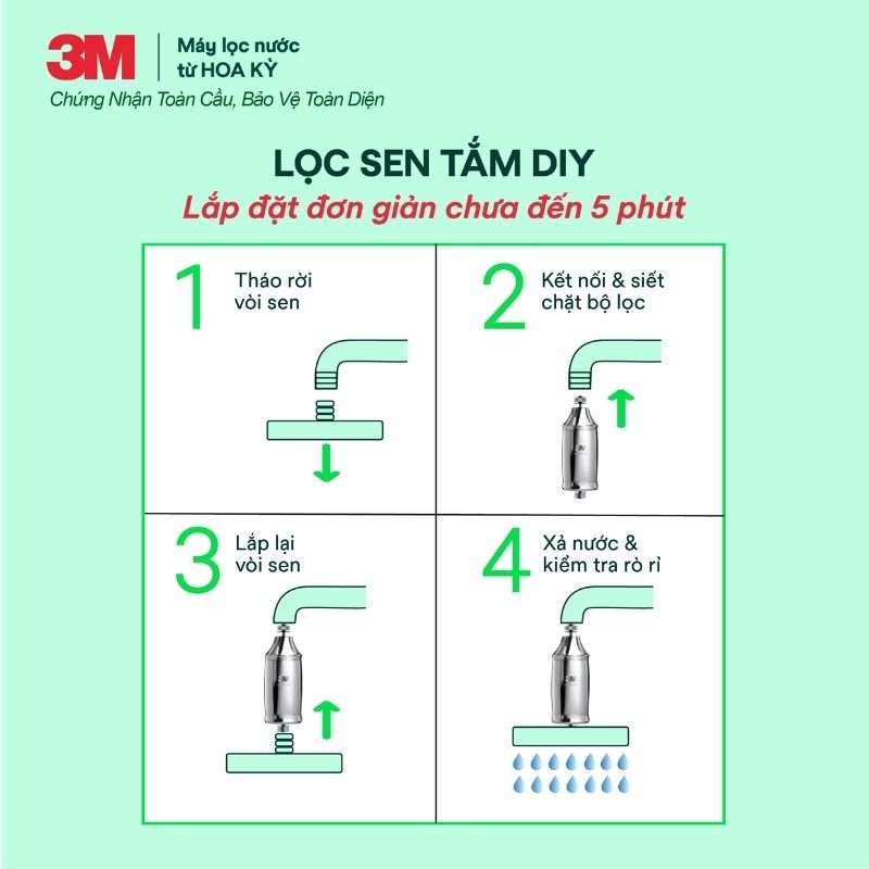 Người dùng có thể tự lắp đặt thiết bị vào vòi sen hiện có mà không cần dụng cụ chuyên dụng. Hướng dẫn chi tiết được cung cấp kèm theo sản phẩm, giúp quá trình lắp đặt diễn ra nhanh chóng và thuận lợi.